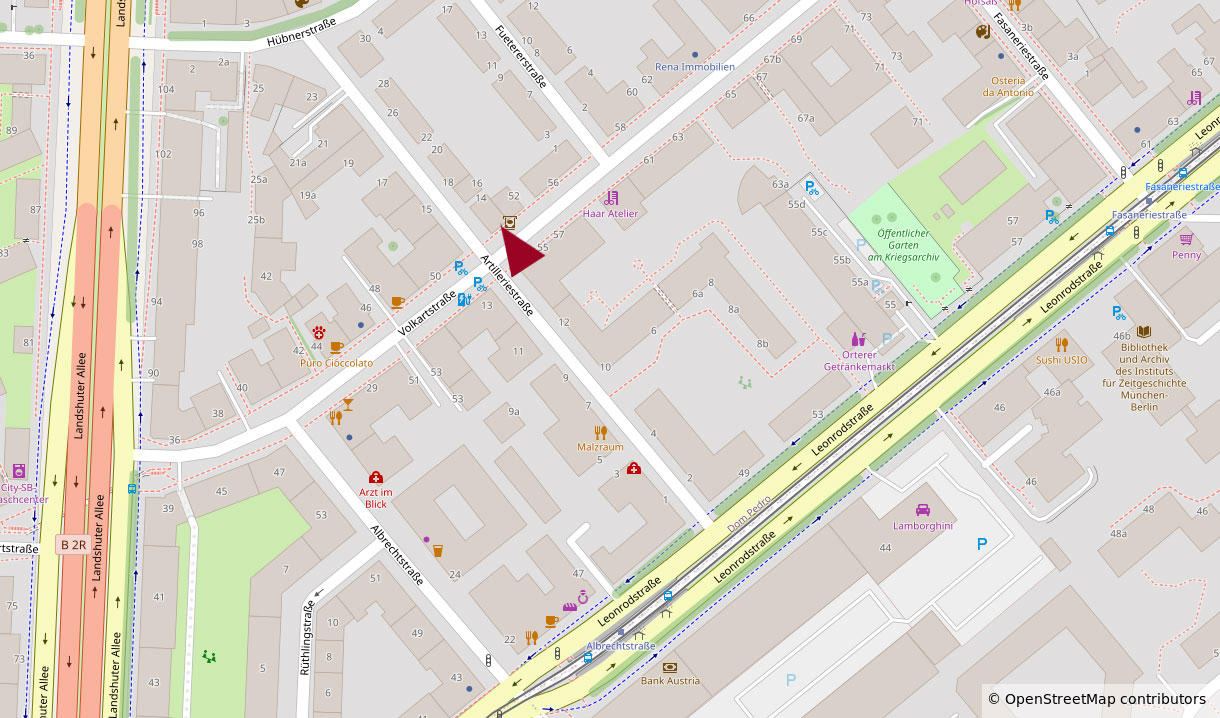oder über die Leonrodstraße Zufahrt Artilleriestraße,